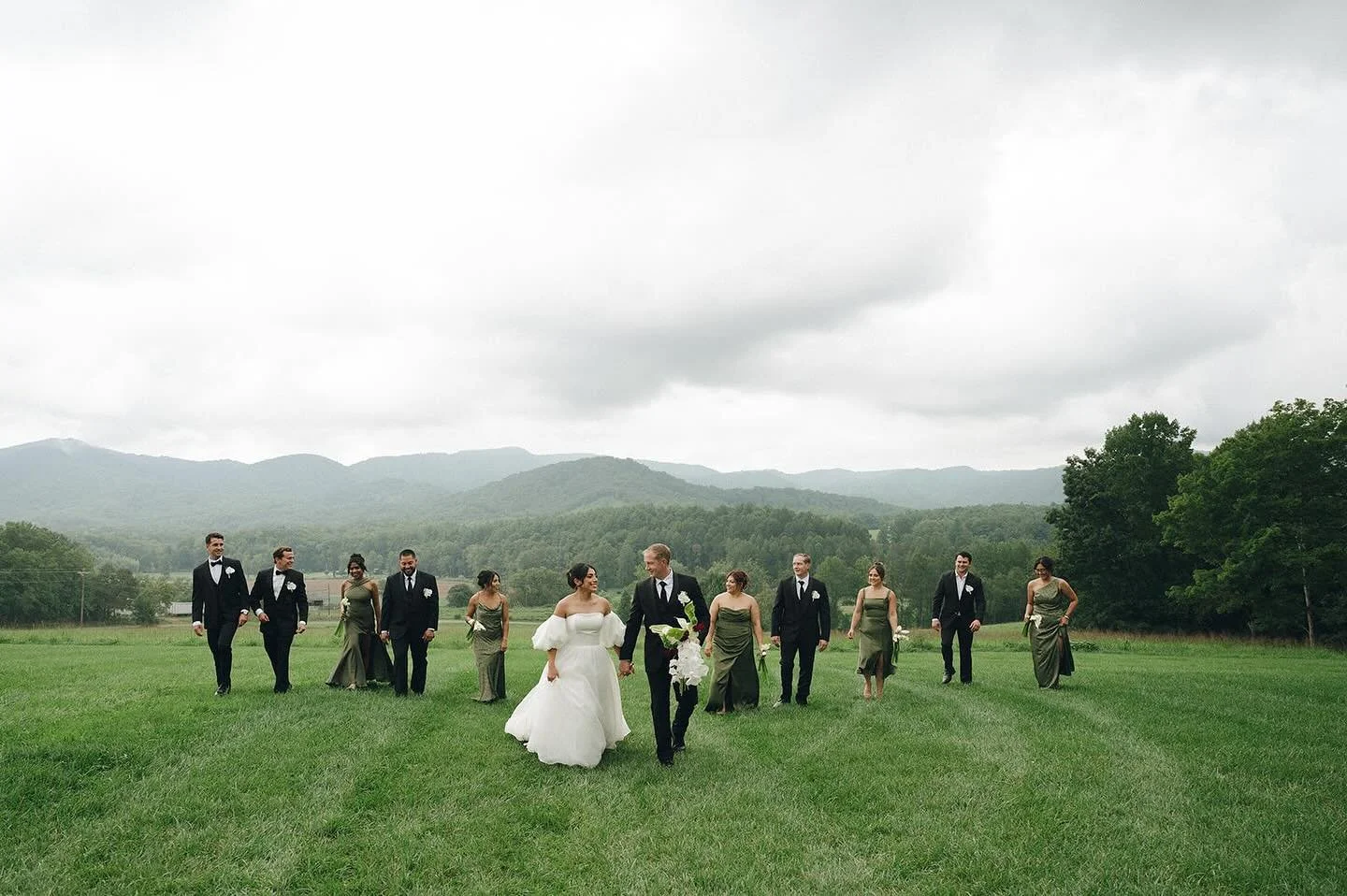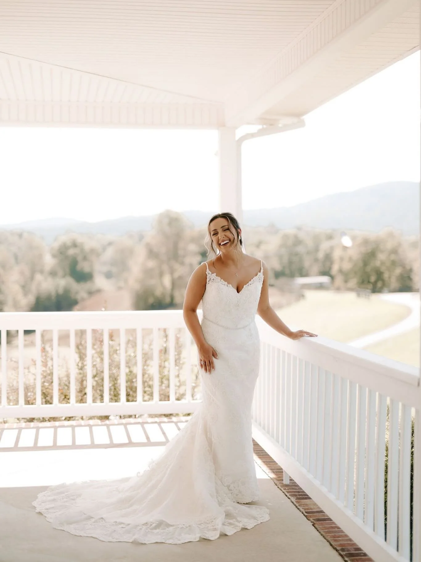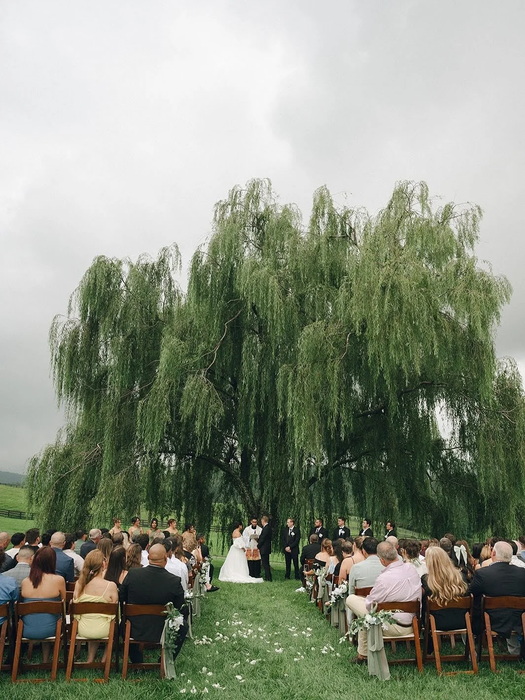 Our reception and ceremony areas overlook a weeping willow tree, rolling hills of farmland and breathtaking views of the Blue Ridge Mountains.